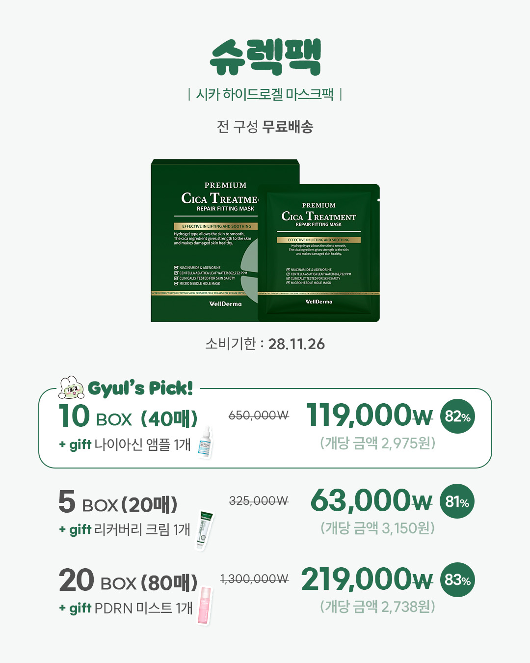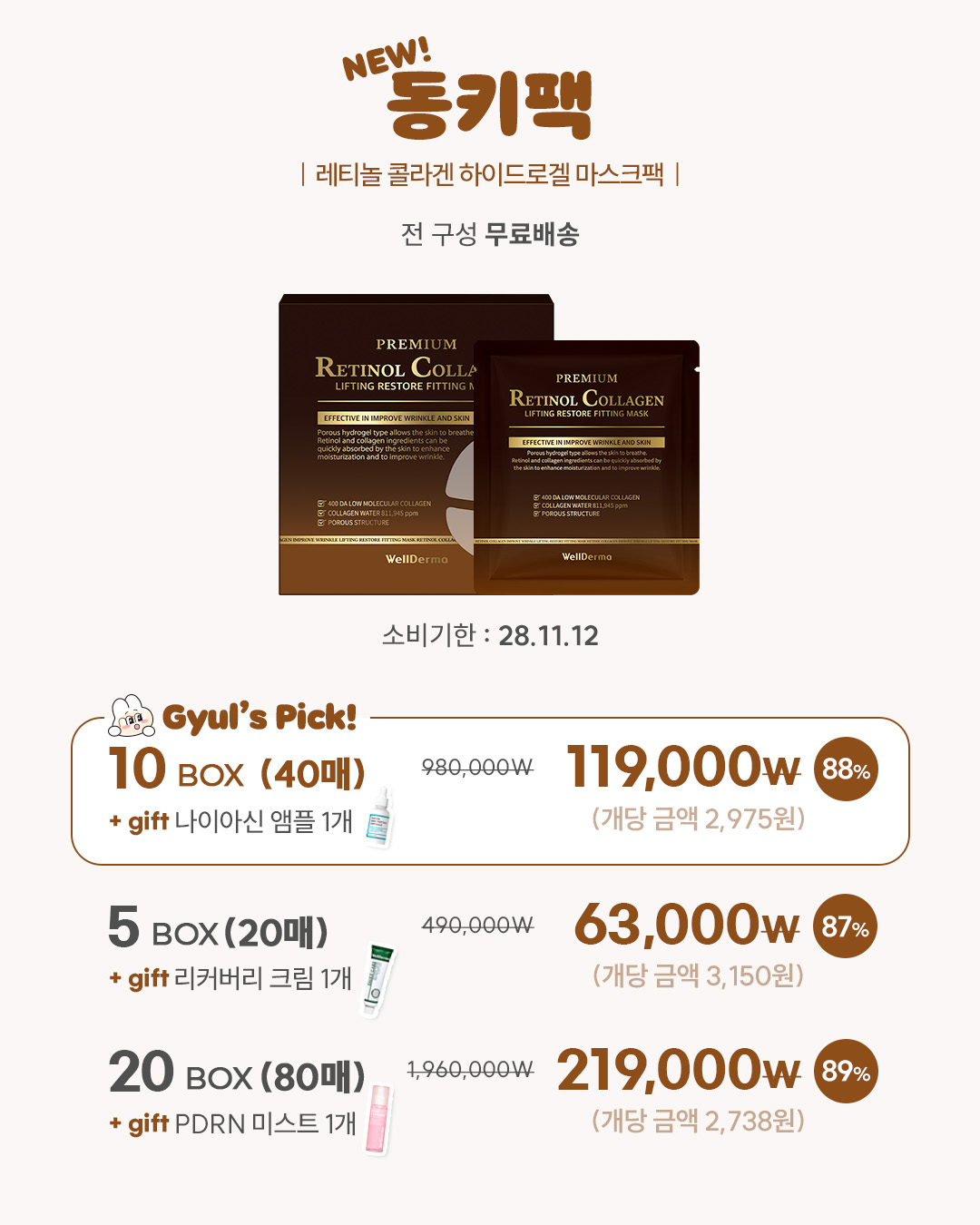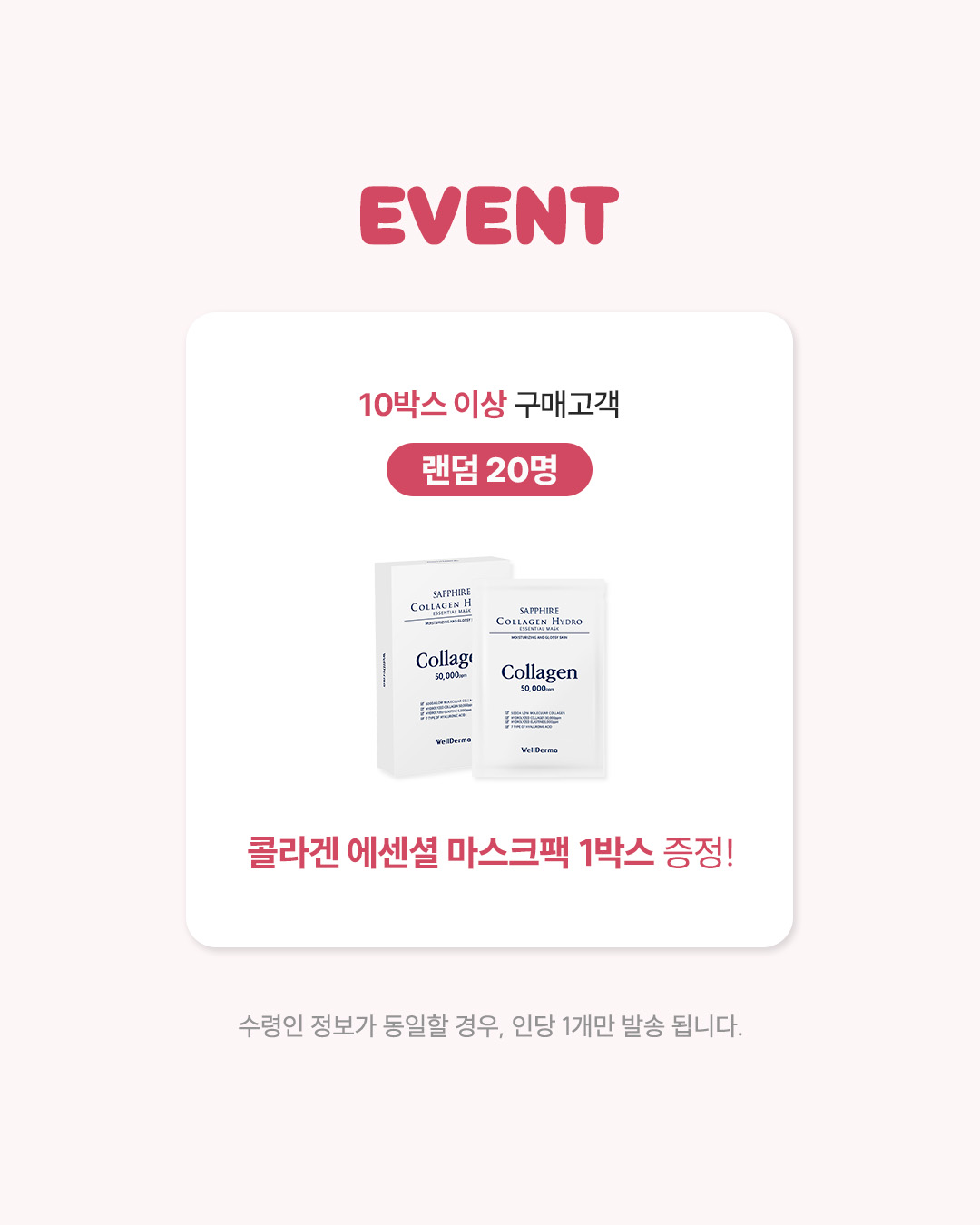 10박스 이상 구매고객 랜덤 20명 콜라겐 에센셜 마스크팩 1박스 증정