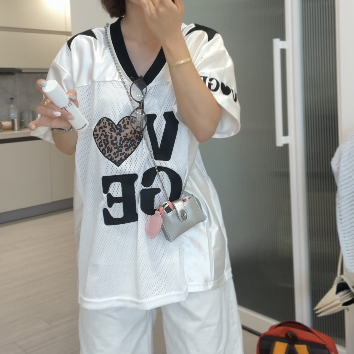 두께감 샬짝 있음 / 비침 있음 / 안감 없음