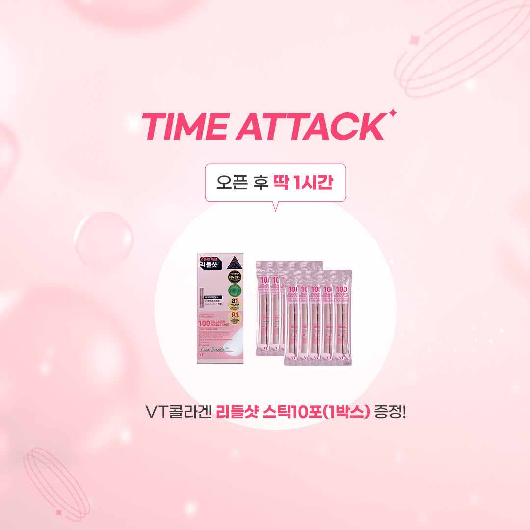 오픈 후 딱 1시간동안만 VT콜라겐 리들샷 스틱10포(1박스)증정 / 선착순 30명 리들샷 시너지 리페어 크림 50 1개 증정