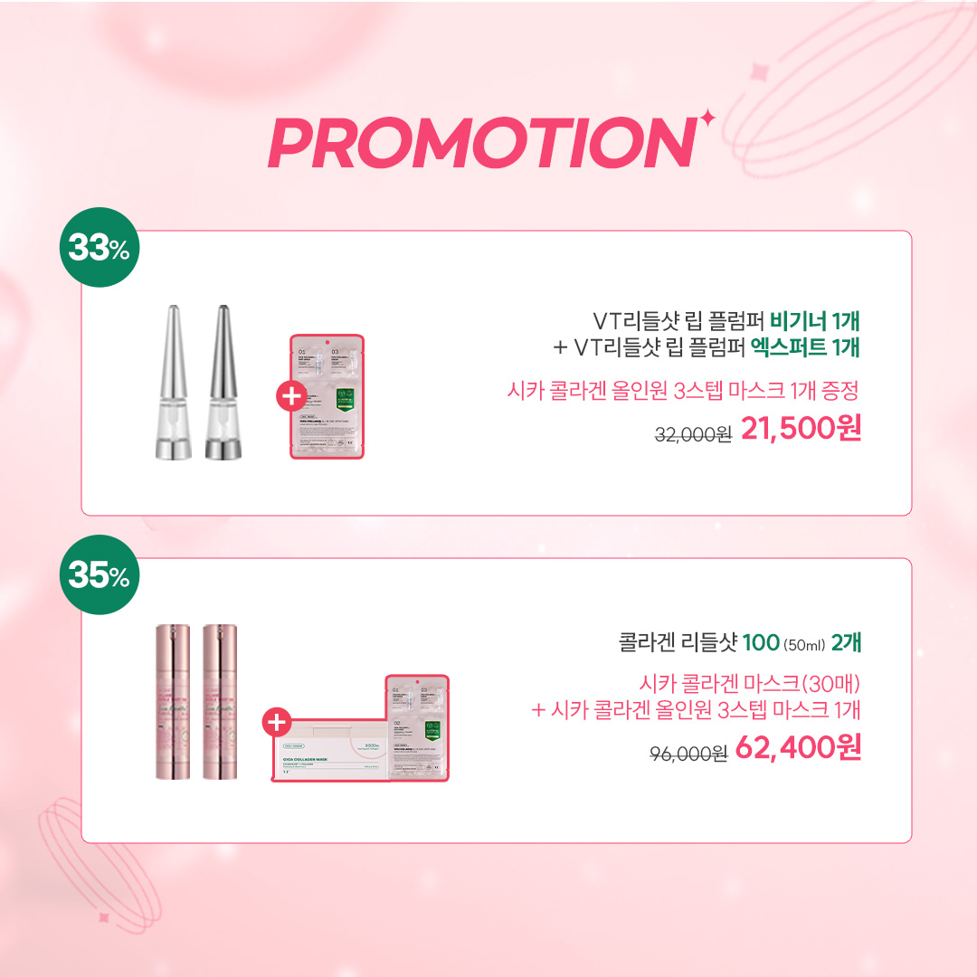 VT콜라겐리들샷&립플럼퍼 알찬 구성으로 돌아왔습니다.!!