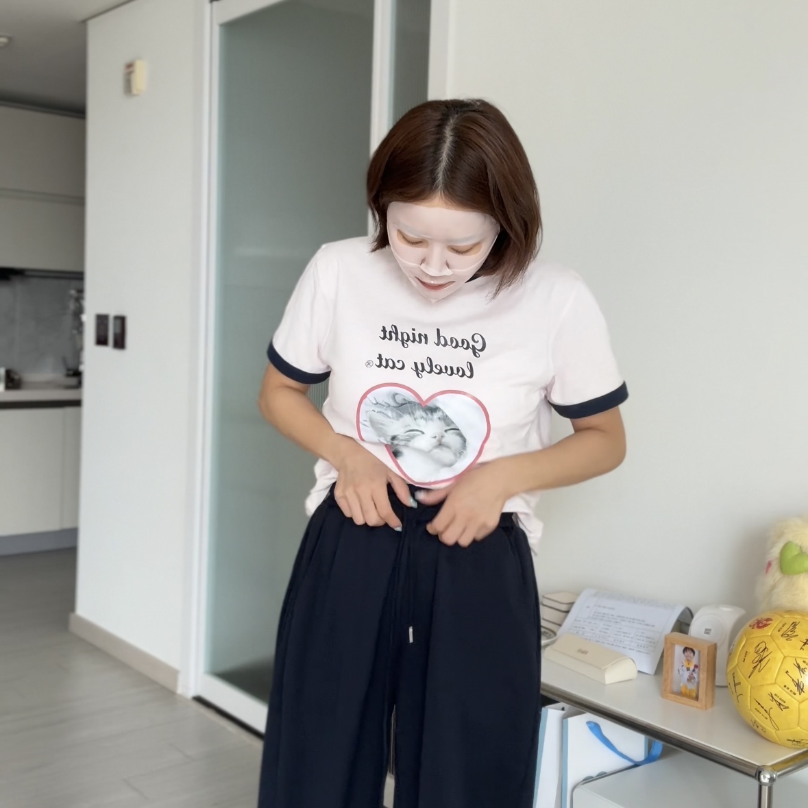 두께감 적당 / 비침 약간있음 / 안감 없음