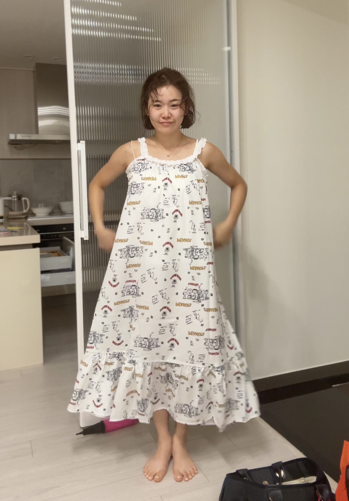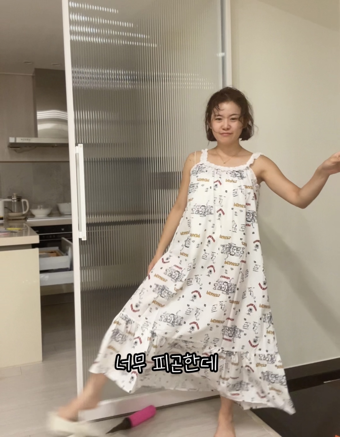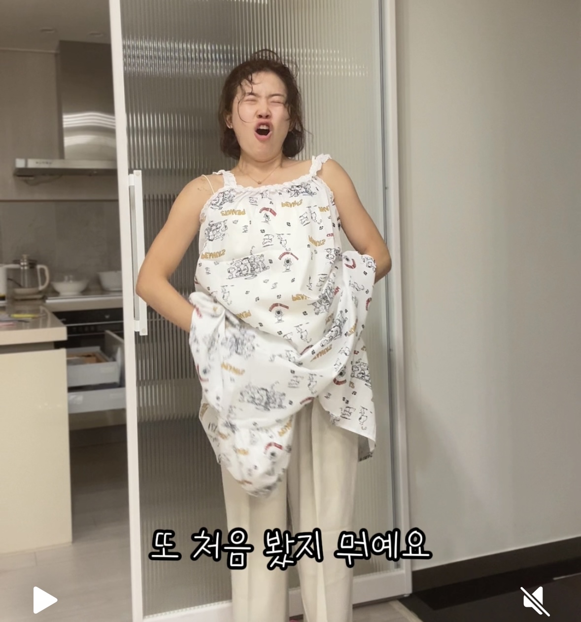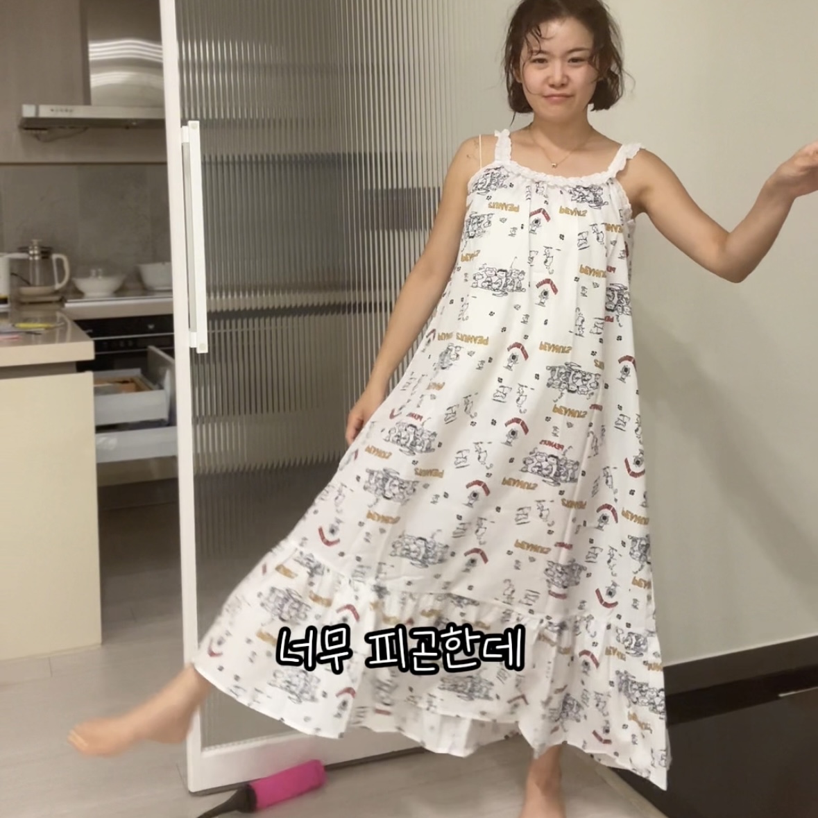 두께감 얄음 / 비침 있음 / 안감 없음