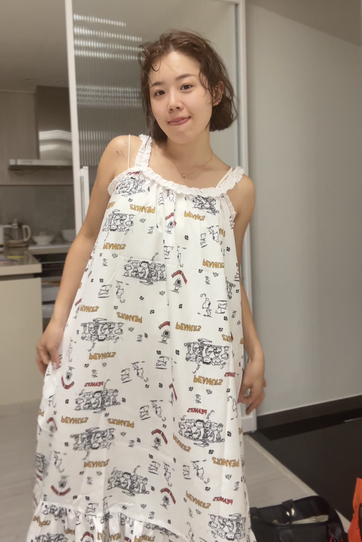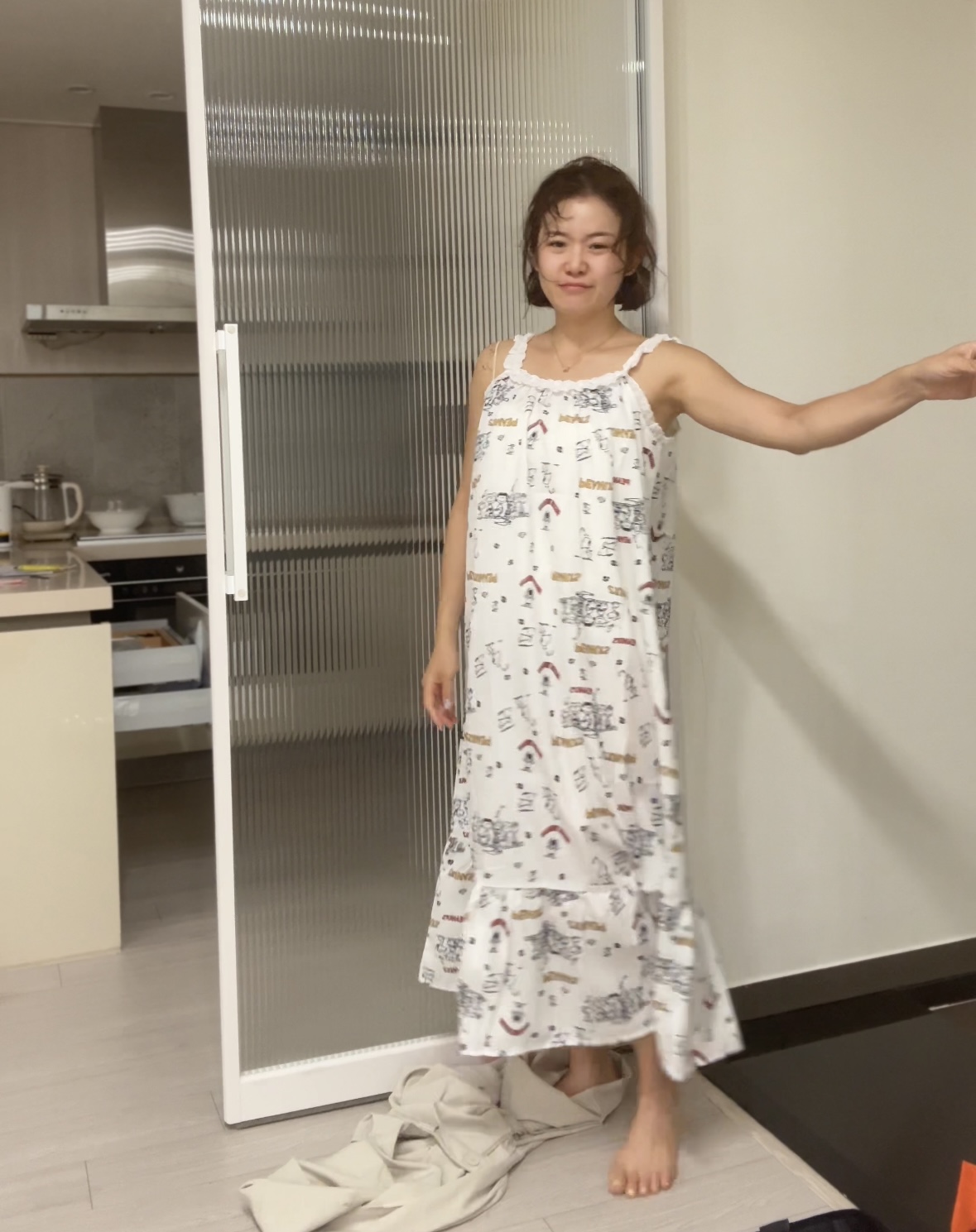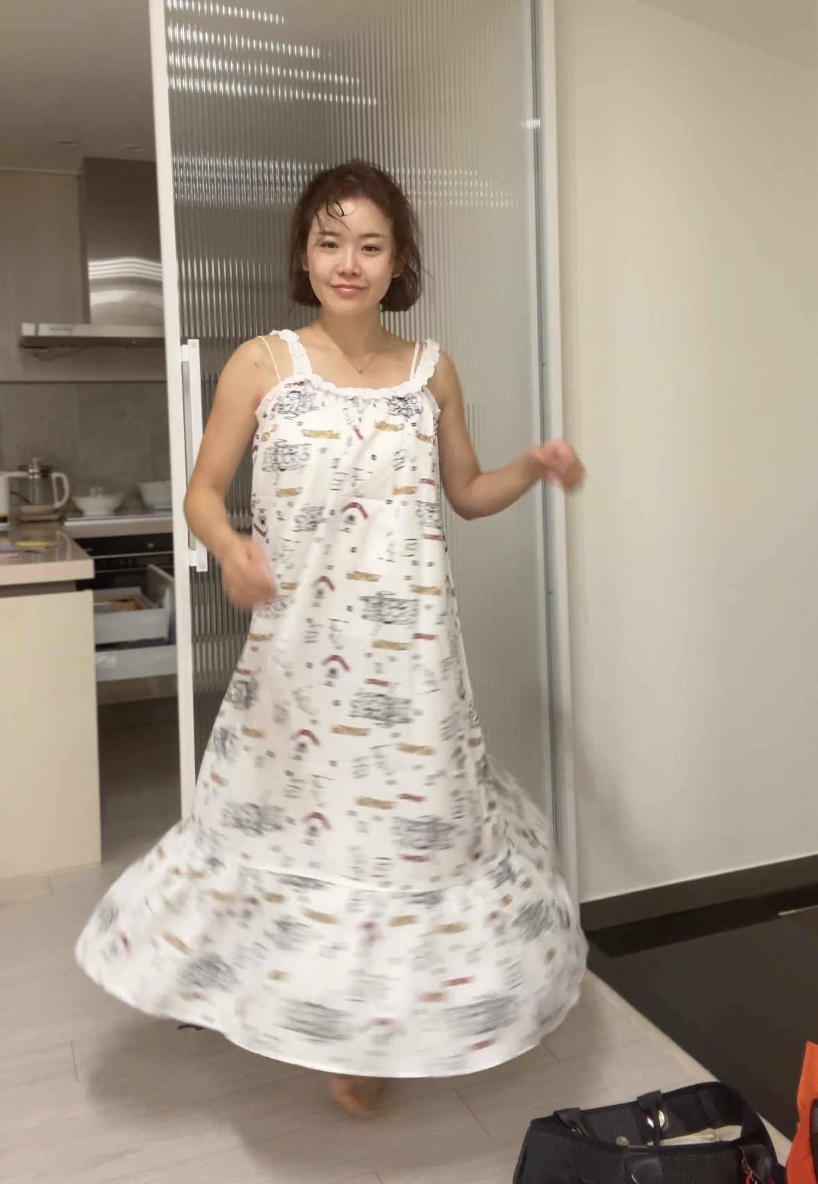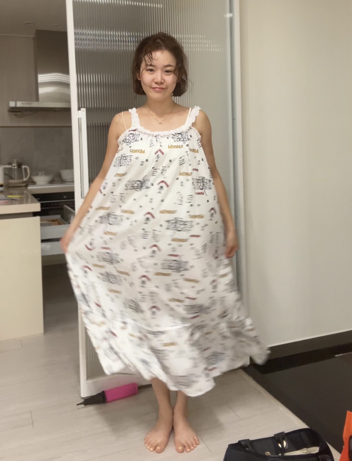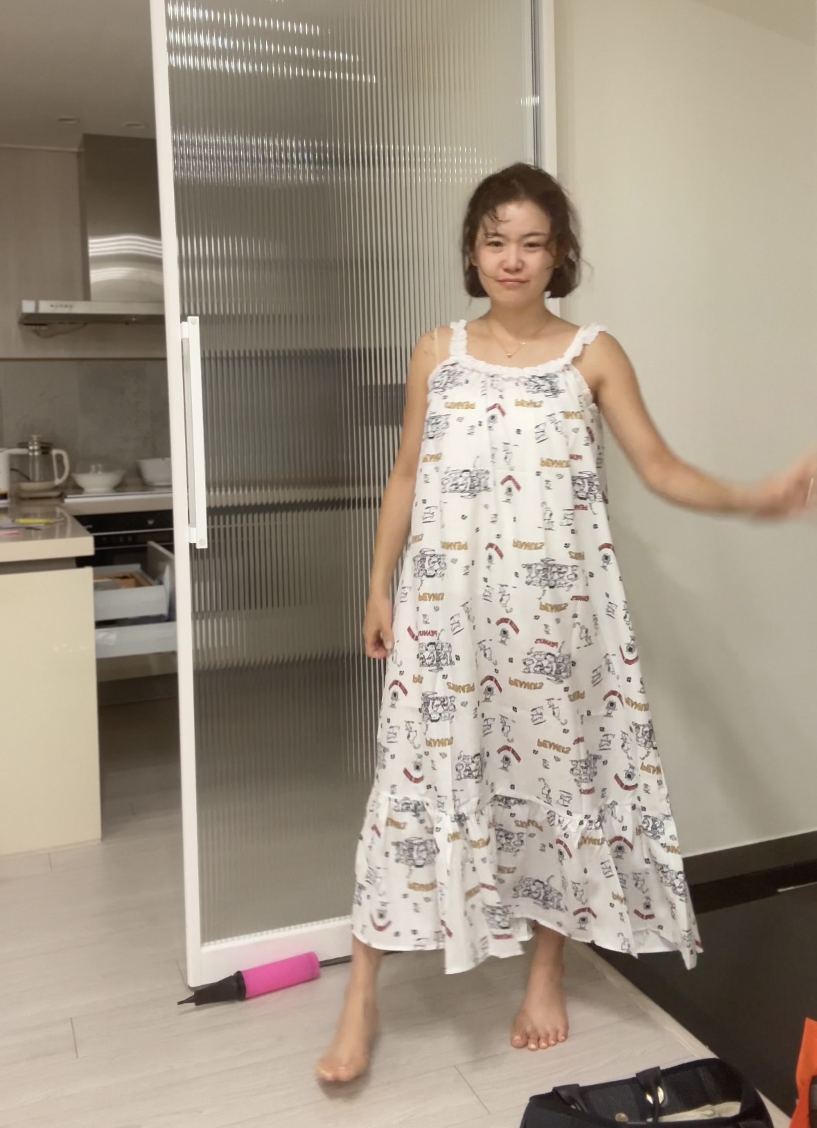 두께감 얄음 / 비침 있음 / 안감 없음