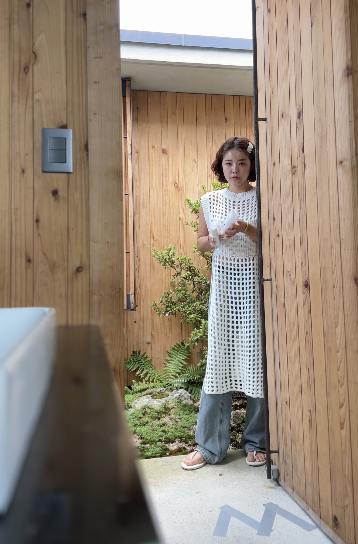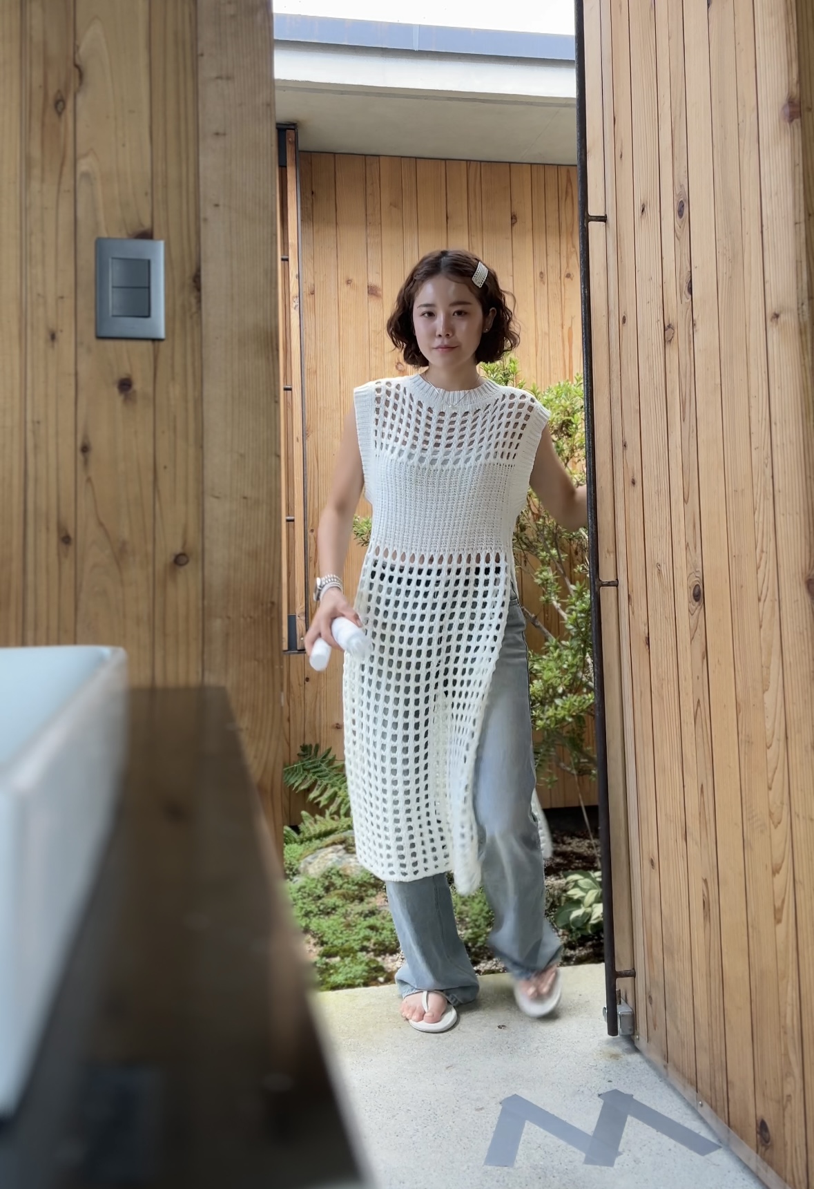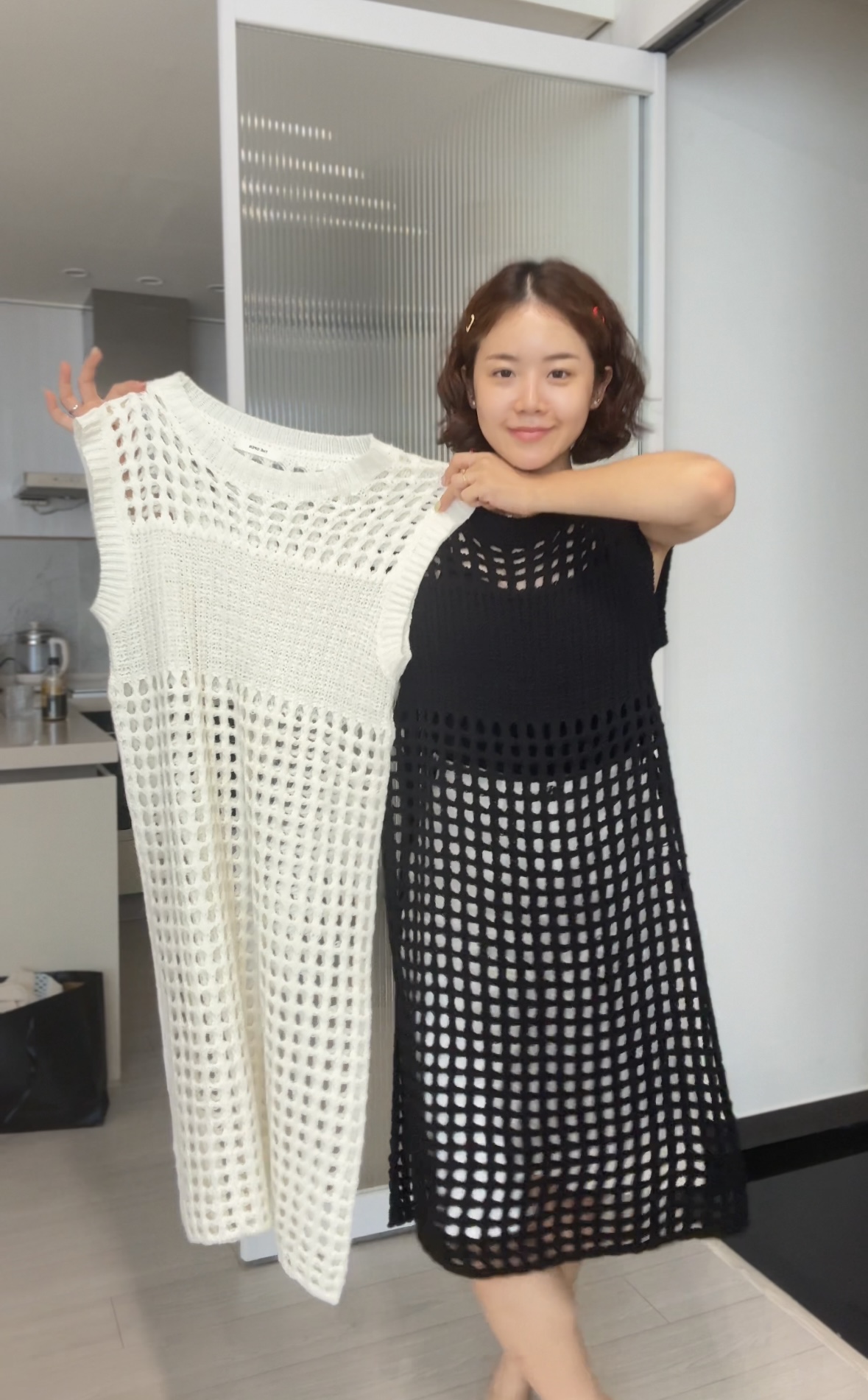 두께감 살짝 / 비침 있음 / 안감 없음