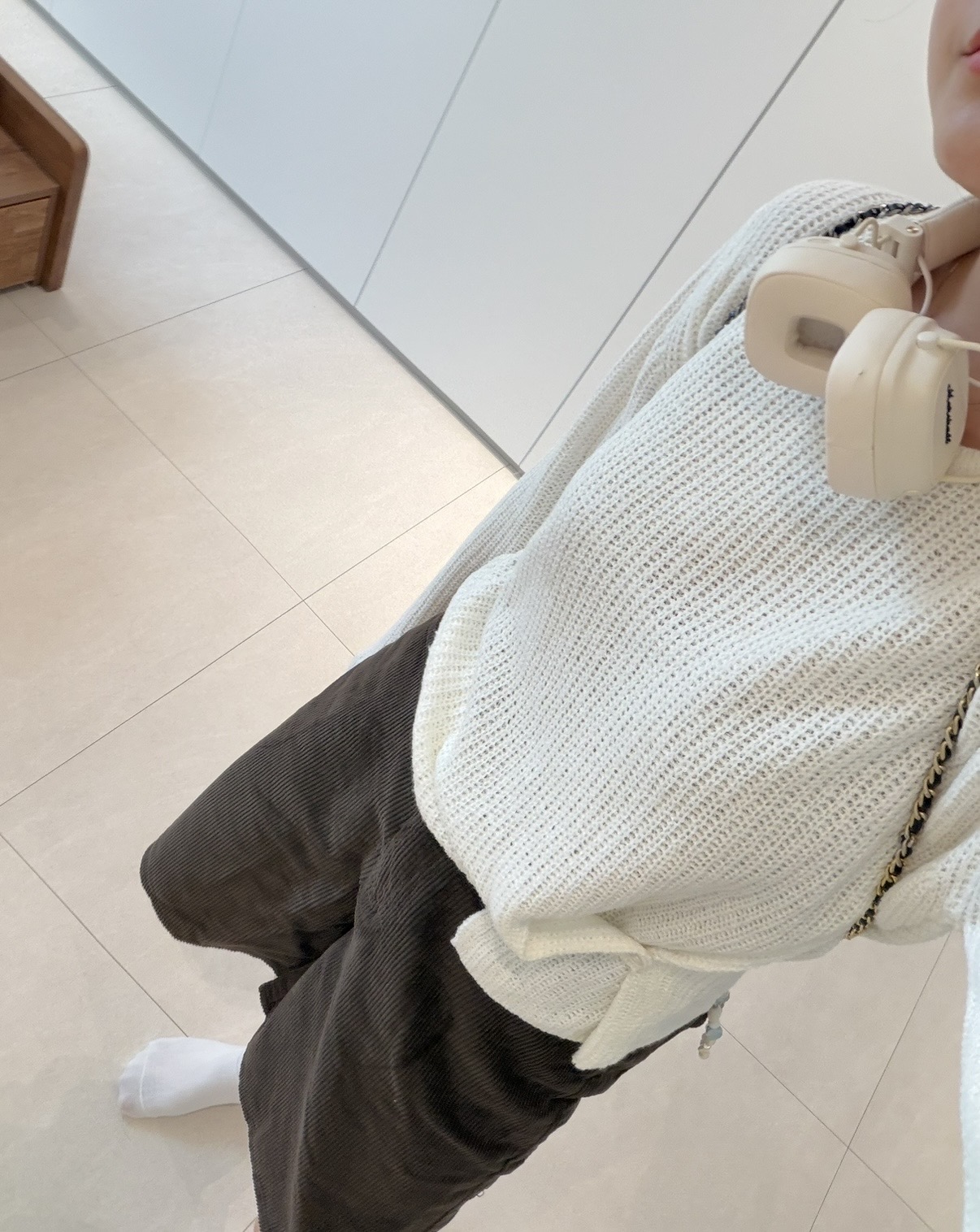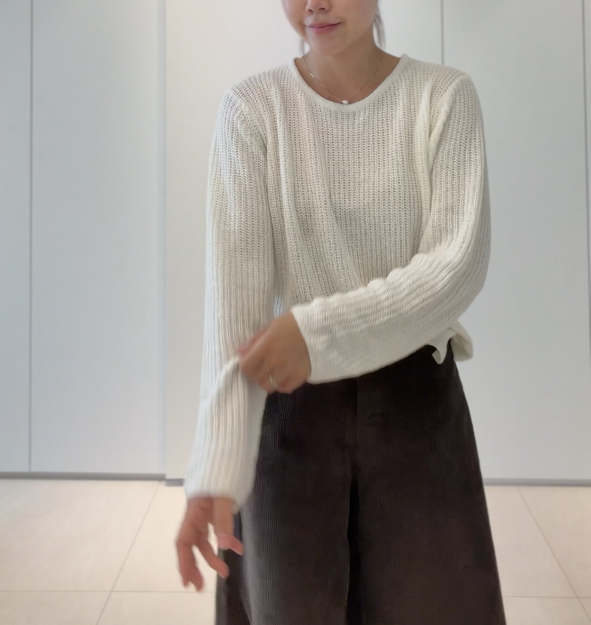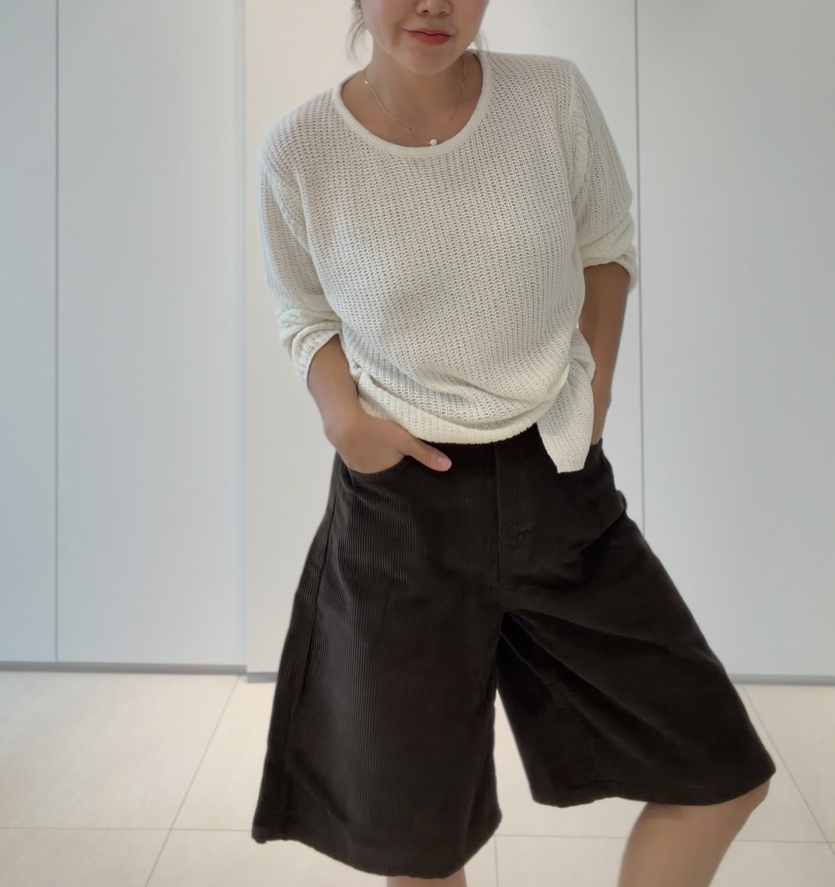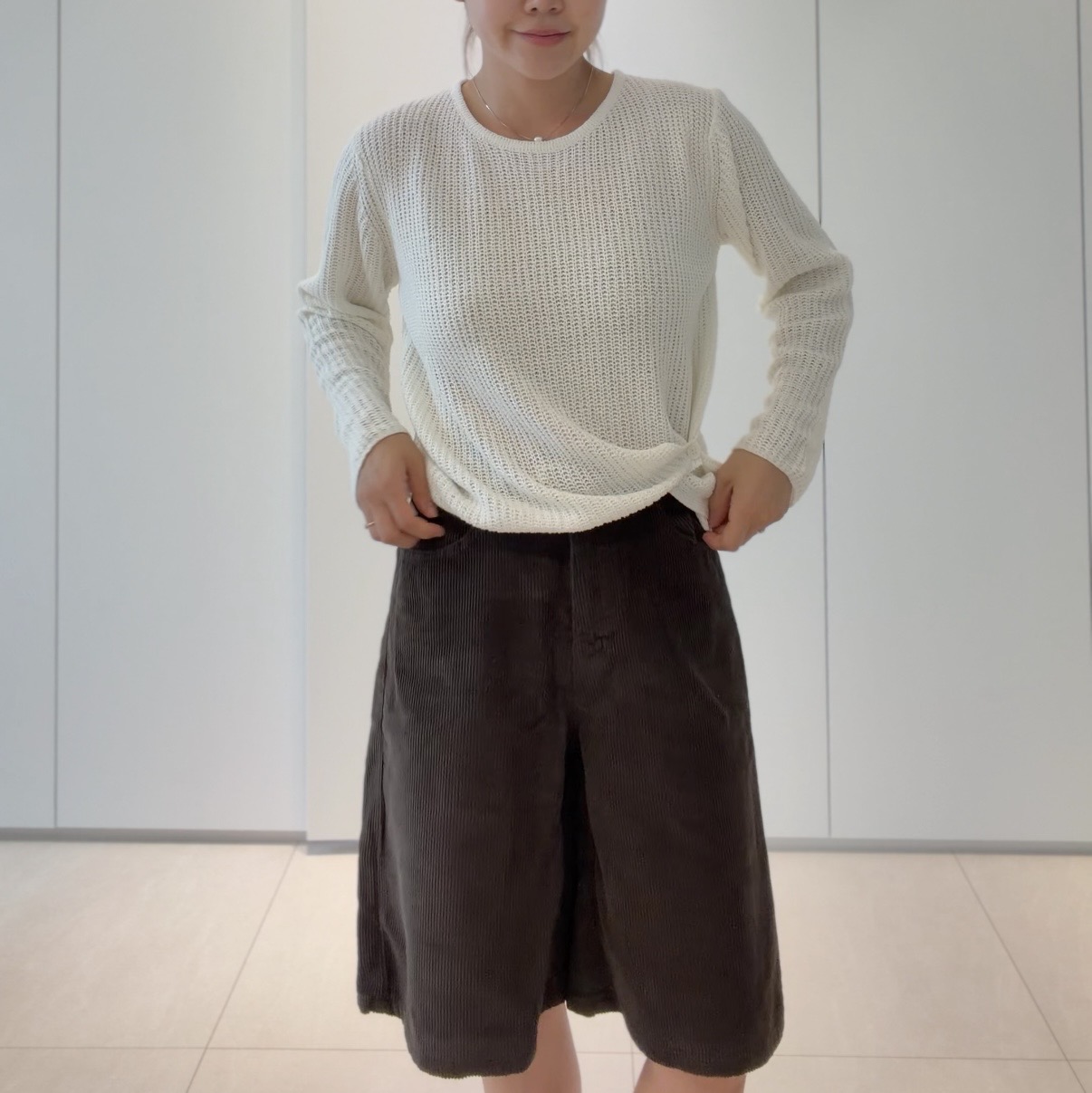 두께감 적당 / 비침 약간 있음 / 안감 없음