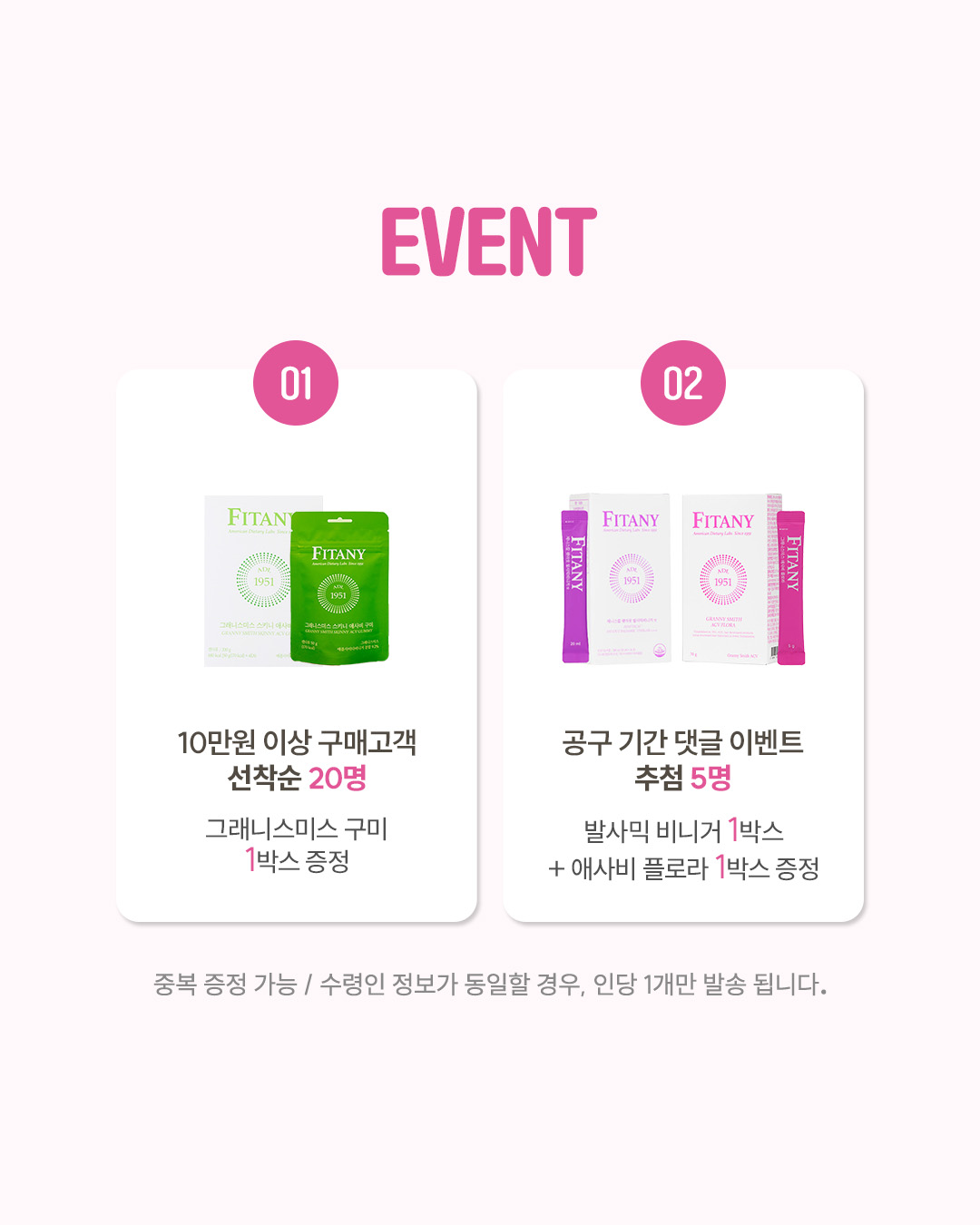 *수령인 정보가 동일할 경우, 인당 1개만 발송됩니다.