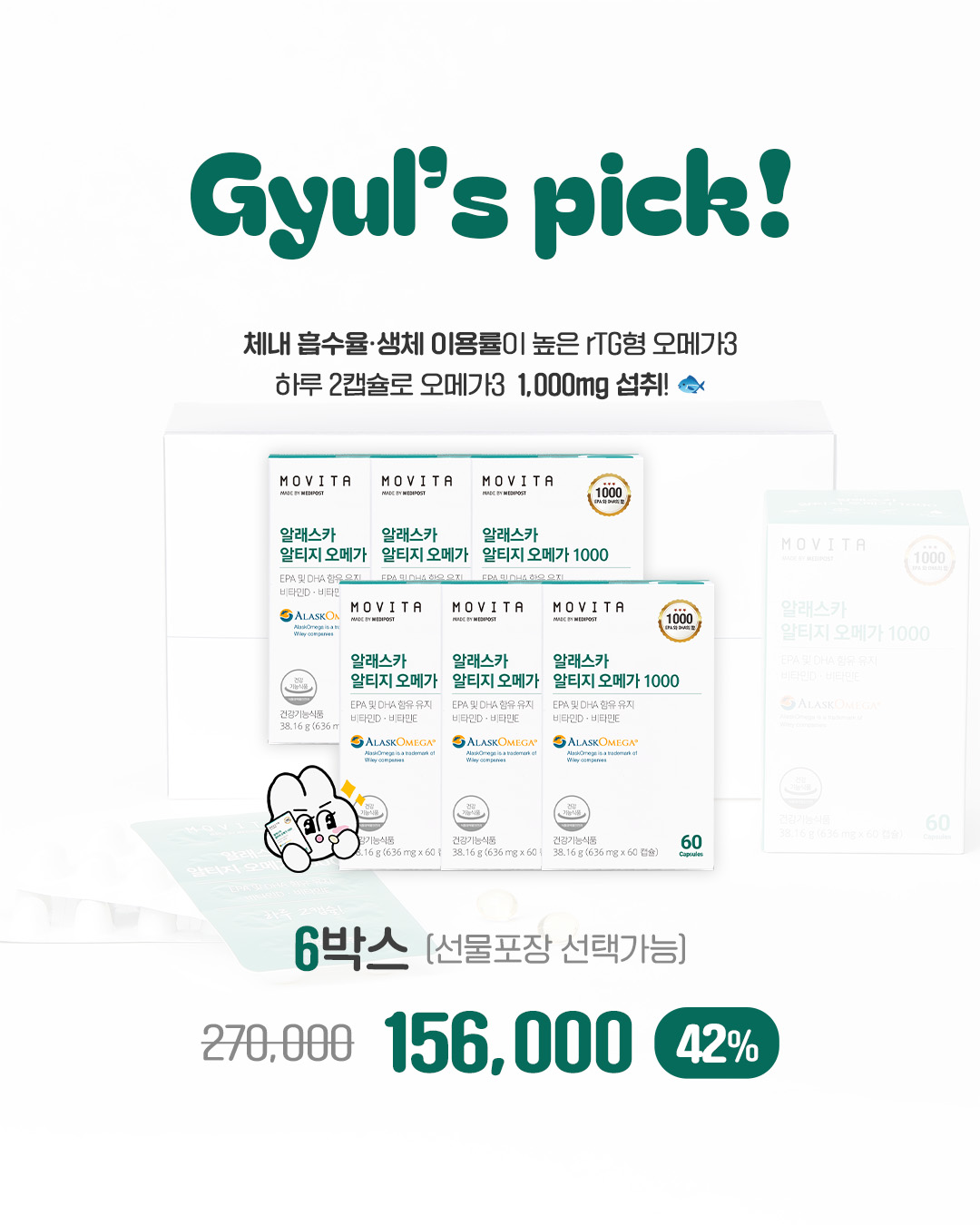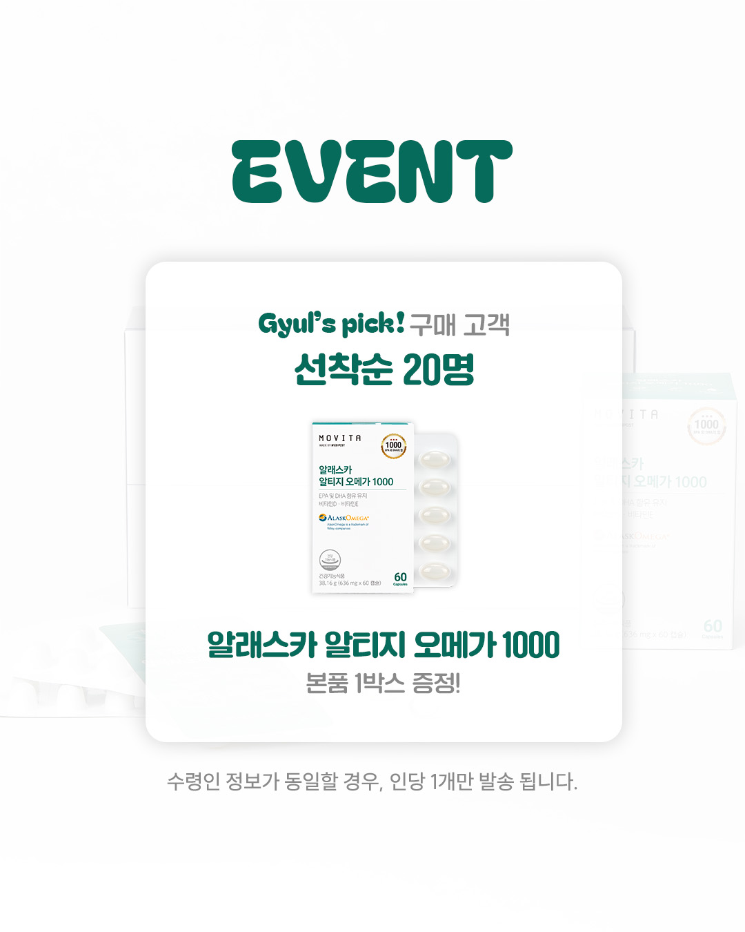6박스 이상 구매고객 선착순 20명 알래스카 알티지 오메가 1000 본품 1박스 증정