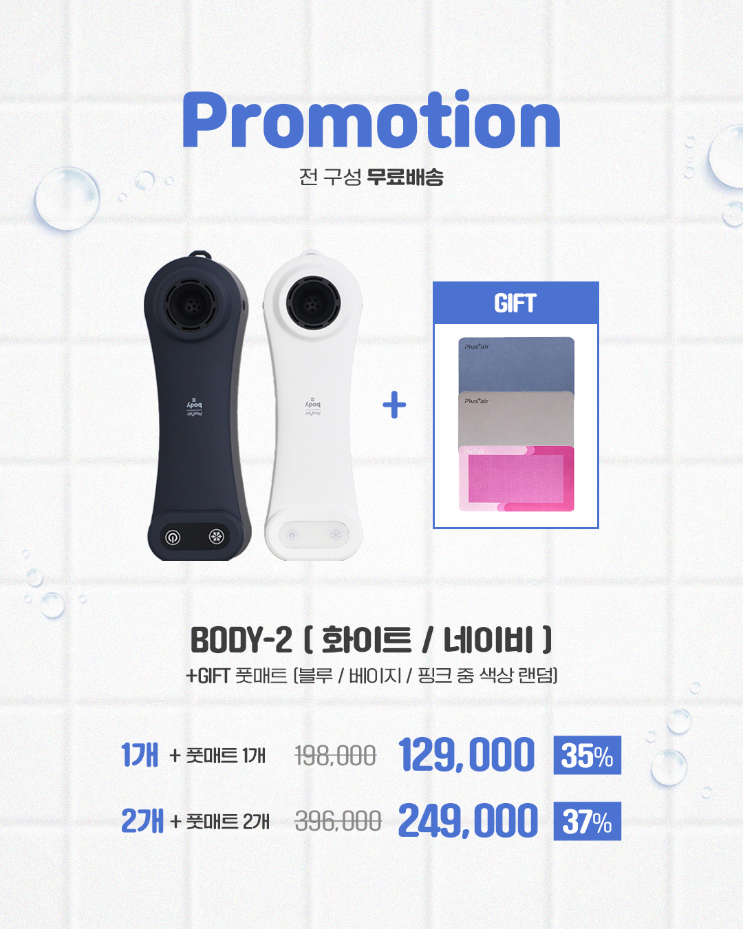 구매완료 베스트후기 1명 BODY-2 무선드라이기 (네이비) + 풋매트 (블루) 1세트 증정