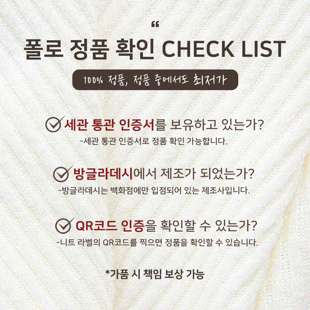 * 잘못되 세탁방법으로 인한 상품의 불량은 당사에서 책임을 지지 않습니다.