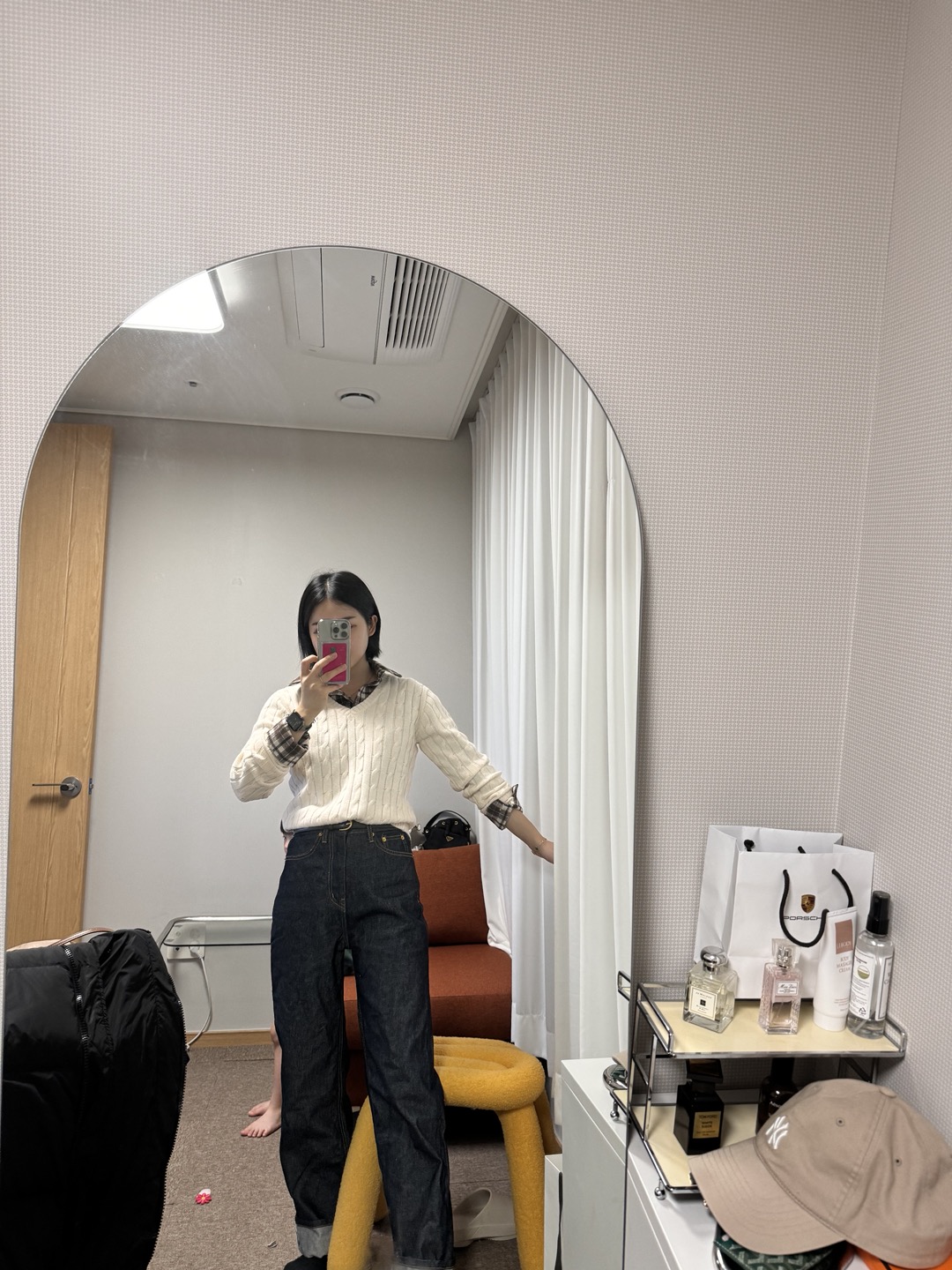 - 아이보리 색상, 니트 경우.