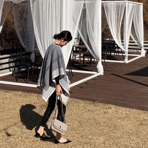 배색 판쵸숄